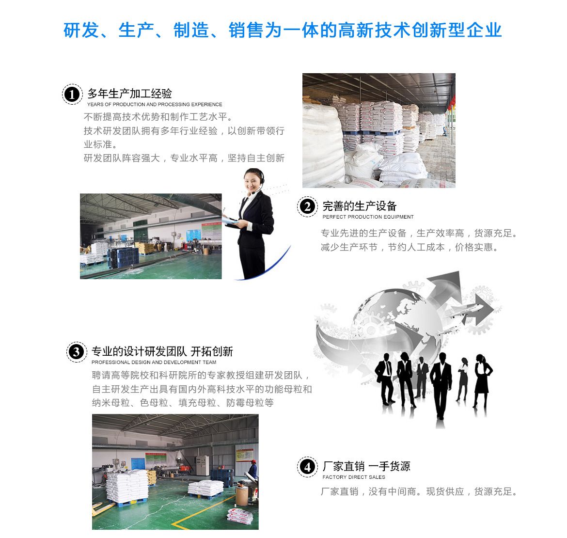 雄縣雄陽(yáng)新材料科技開(kāi)發(fā)有限公司,屬河北省科技型高新技術(shù)企業(yè)、公司始建于2006年,坐落于京、津、冀發(fā)展核心位置的河北省雄安新區(qū)雄縣,地理位置優(yōu)越、發(fā)展空間充裕、交通通暢便捷。是一家以納米科技和高分子復(fù)合新材料研發(fā)、生產(chǎn)、制造、銷(xiāo)售為一體的高新技術(shù)創(chuàng)新型企業(yè)。我公司長(zhǎng)期致力于生物科技領(lǐng)域、污水處理領(lǐng)域和納米高分子復(fù)合新材料的科技研發(fā)及生產(chǎn),聘請(qǐng)高等院校和科研院所的專(zhuān)家組建研發(fā)團(tuán)隊(duì),精研高新領(lǐng)域內(nèi)的高分子復(fù)合新材料和納米新材料的國(guó)內(nèi)外先進(jìn)技術(shù),自主研發(fā)生產(chǎn)出具有國(guó)內(nèi)外高科技水平的環(huán)保復(fù)合污水處理材料、功能母粒、納米母粒、色母粒、填充母粒、防霉母粒等,廣泛應(yīng)用于國(guó)內(nèi)外污水處理領(lǐng)域以及塑料塑膠領(lǐng)域。在滿(mǎn)足市場(chǎng)需求的同時(shí),把握行業(yè)發(fā)展趨向,創(chuàng)造綠色環(huán)保的高科技產(chǎn)品,不斷地升級(jí)創(chuàng)新,達(dá)到同行業(yè)先進(jìn)科技水平。公司本著誠(chéng)信共贏(yíng)、開(kāi)拓創(chuàng)新的理念服務(wù)于社會(huì),嚴(yán)格的管理、專(zhuān)業(yè)的設(shè)計(jì)、優(yōu)質(zhì)的服務(wù)是我們永遠(yuǎn)不變的宗旨!
